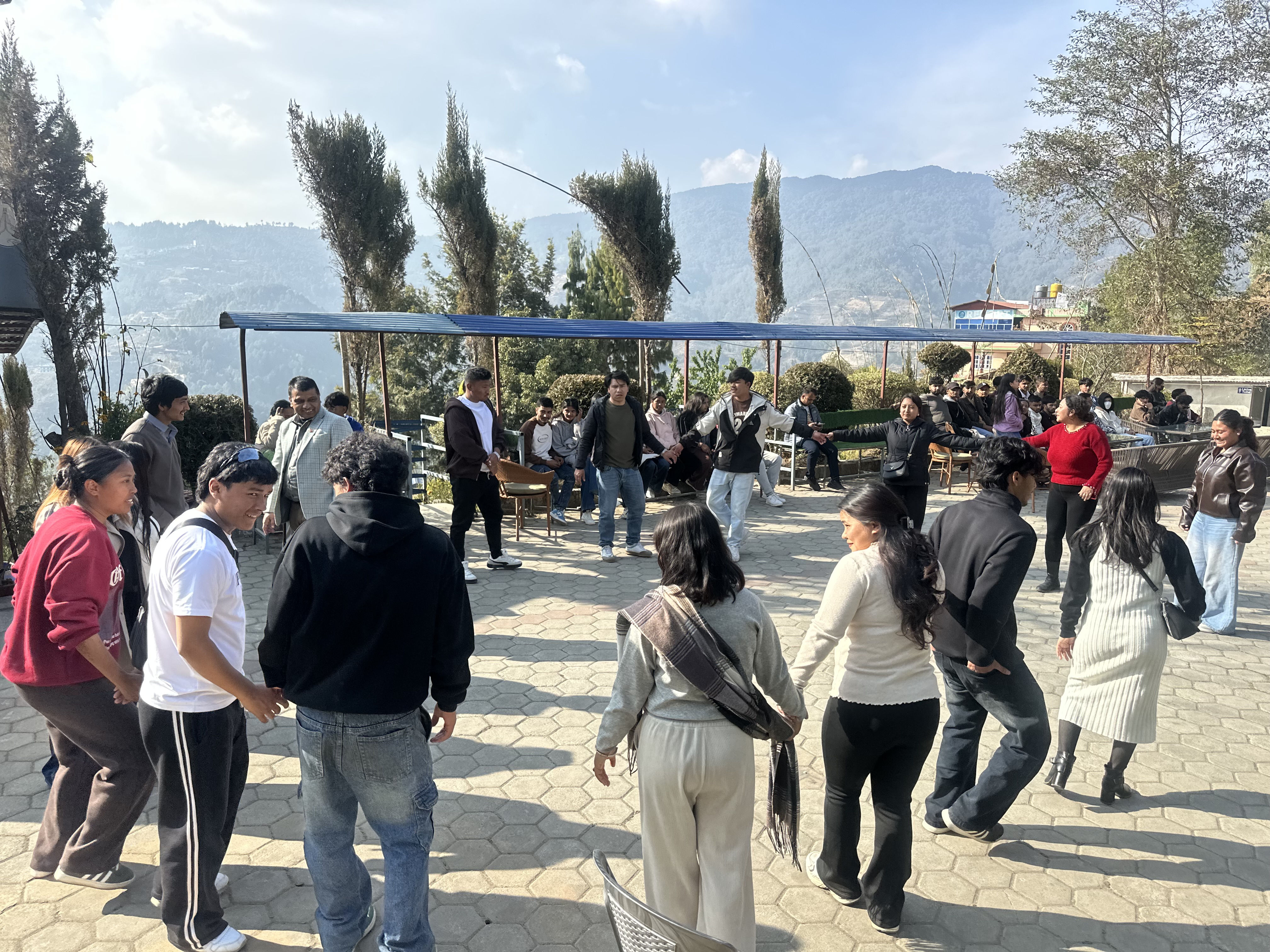Soon after, we headed toward the nearby Chiya Bagan (Mini Ilam). Since the bus could not reach the top, we hiked for about 15 minutes. The hike was anything but tiring — we were singing, joking, and dancing along the way.